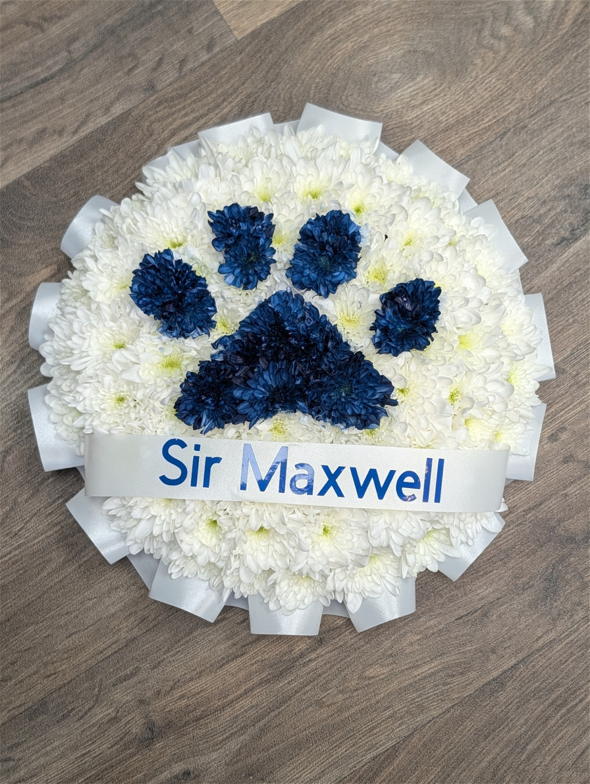 A thoughtful floral tribute created to honour the memory of a much-loved companion. Carefully arranged using white double xanth. This design offers a heartfelt way to express sympathy and remembrance during a difficult time.