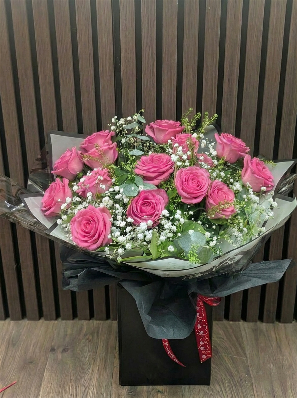 P.S. I Love You is a timeless and romantic bouquet designed to say everything your heart feels. Featuring luxurious red or pink roses nestled among delicate white gypsophila and lush greenery, this arrangement is finished with elegant detailing for a truly heartfelt gift. Classic, passionate and full of love, it’s the perfect way to express romance, devotion and those unspoken words — ideal for Valentine’s Day, anniversaries or simply to remind someone how much they mean to you.